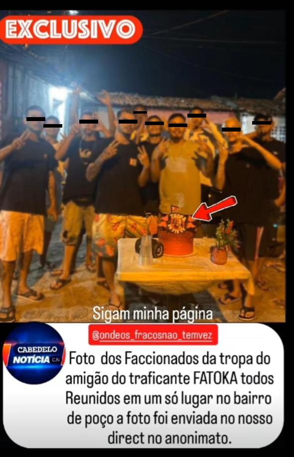 O prefeito cassado André Coutinho, fez o lançamento,em suas mídias sociais, do projeto “Segurança Integrada” em Cabedelo, enquanto isso, fotos vazadas revelaram a festa de uma facção, comemorando o aniversário do seu líder bem no coração da cidade. As imagens mostram, chocantemente, reuniões de membros da facção nos bairros de Miramar e Recanto do Poço, até bolo temático teve, com gestos abertamente pró-crime organizado.