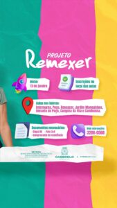 O projeto Remexer se caracteriza por uma aula de ritmos voltada às mulheres cabedelenses, sob o acompanhamento de um educador físico. O projeto abrange todas as faixas etárias e contempla um número expressivo de mulheres, oferecendo saúde, qualidade de vida e bem estar.